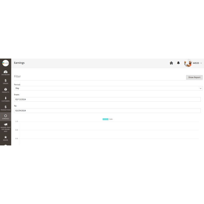 Sellers can check their earnings in chart and grid view.