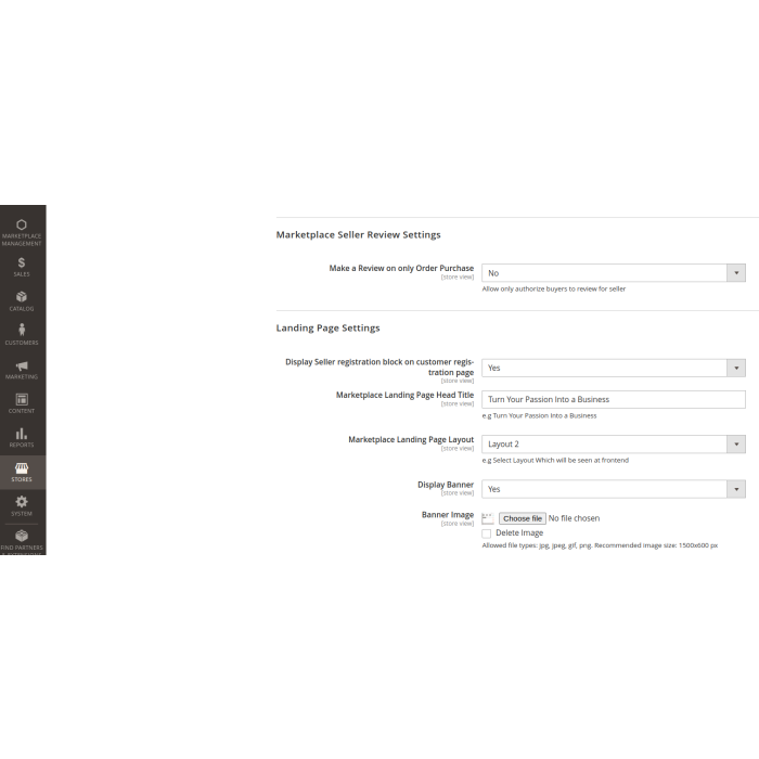 - + Allow admin to configure marketplace landing page options like banner, banner content, button label, icons, etc.