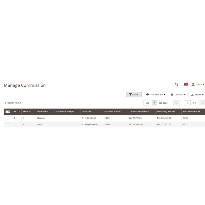 The marketplace module provides seller commission management for online marketplace owners or store admin. In the base marketplace module, the admin can set a commission on a global level or at the vendor/seller level.