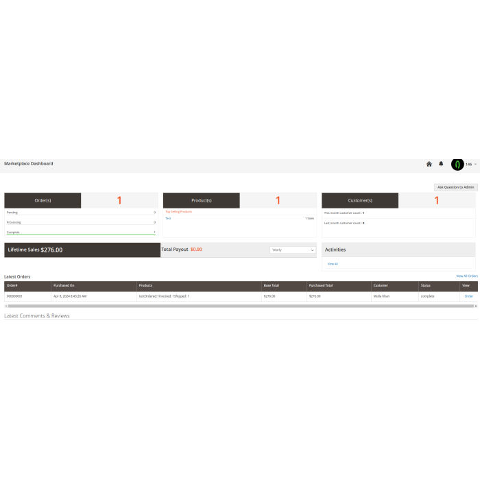 - + Latest seller's order in seller's dashboard.