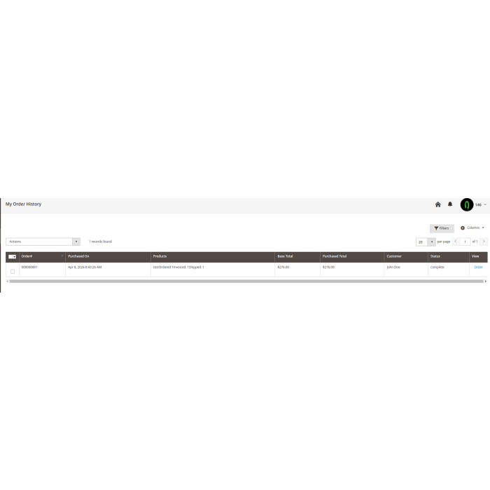 - + Seller's order with filter by order id, date, and status in seller's order history page.