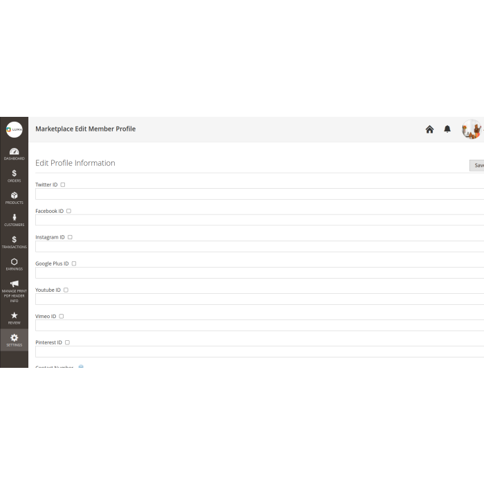 - + Allow sellers to add social media icons on their profile page.