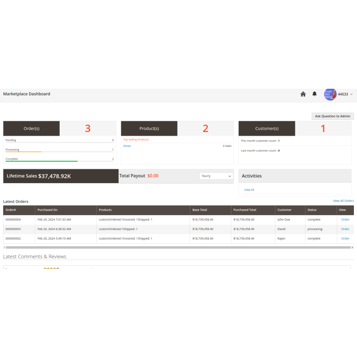 Admin can allow the sellers to have their own separate dashboard for showing store information overview.